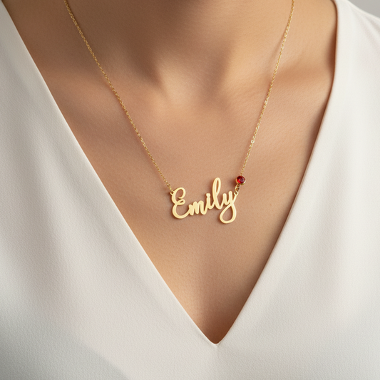 925 Ayar Gümüş Kişiye Özel Doğum Taşlı İsim Kolye