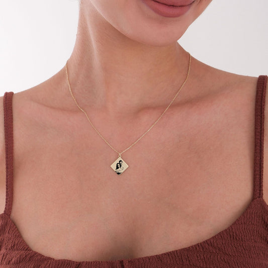 İNDİRİM 50%925 Ayar Gümüş Karakalem Çizimli Fotoğraf Kolye