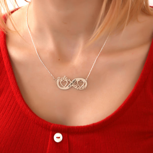 925 Ayar Gümüş Kişiye Özel Sonsuzluk İsim ve Tarih Kolye
