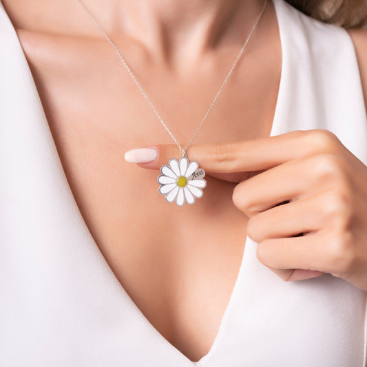 925 Ayar Gümüş Kişiye Özel Papatya Tasarımlı Kolye