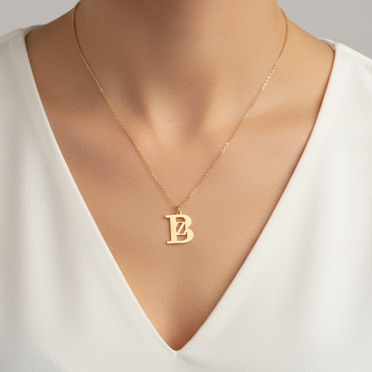 925 Ayar Gümüş Kişiye Özel İç İçe Harf Tasarımlı Kolye
