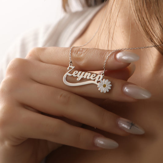 925 Ayar Gümüş Kişiye Özel Papatya Tasarımlı İsim Kolye