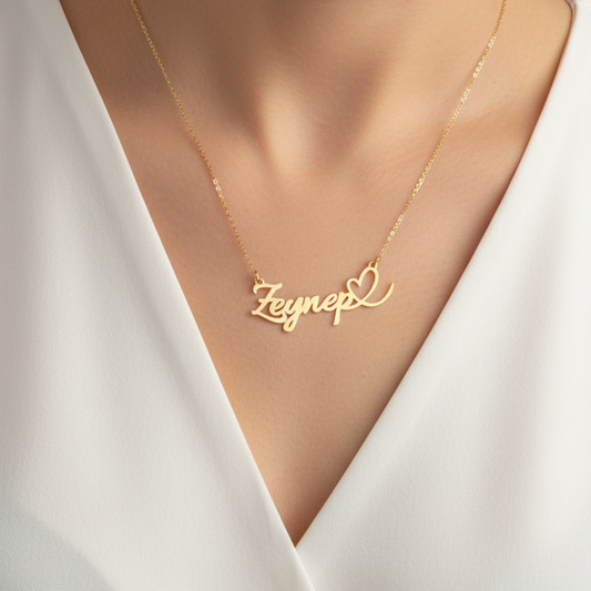 925 Ayar Gümüş Kişiye Özel Kalpli İsim Kolye