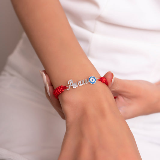 925 Ayar Gümüş Kişiye Özel Nazarlı İsimli İp Bileklik