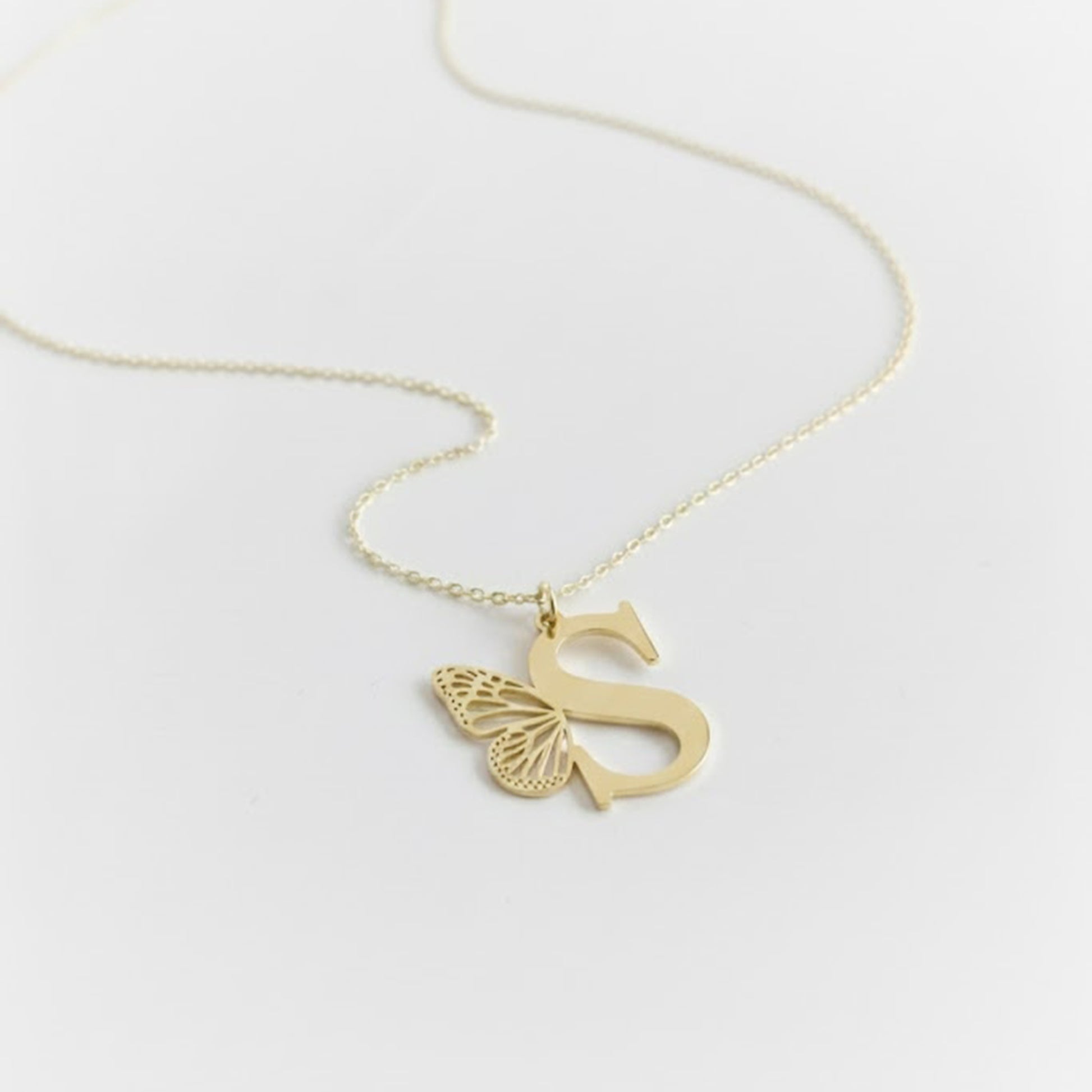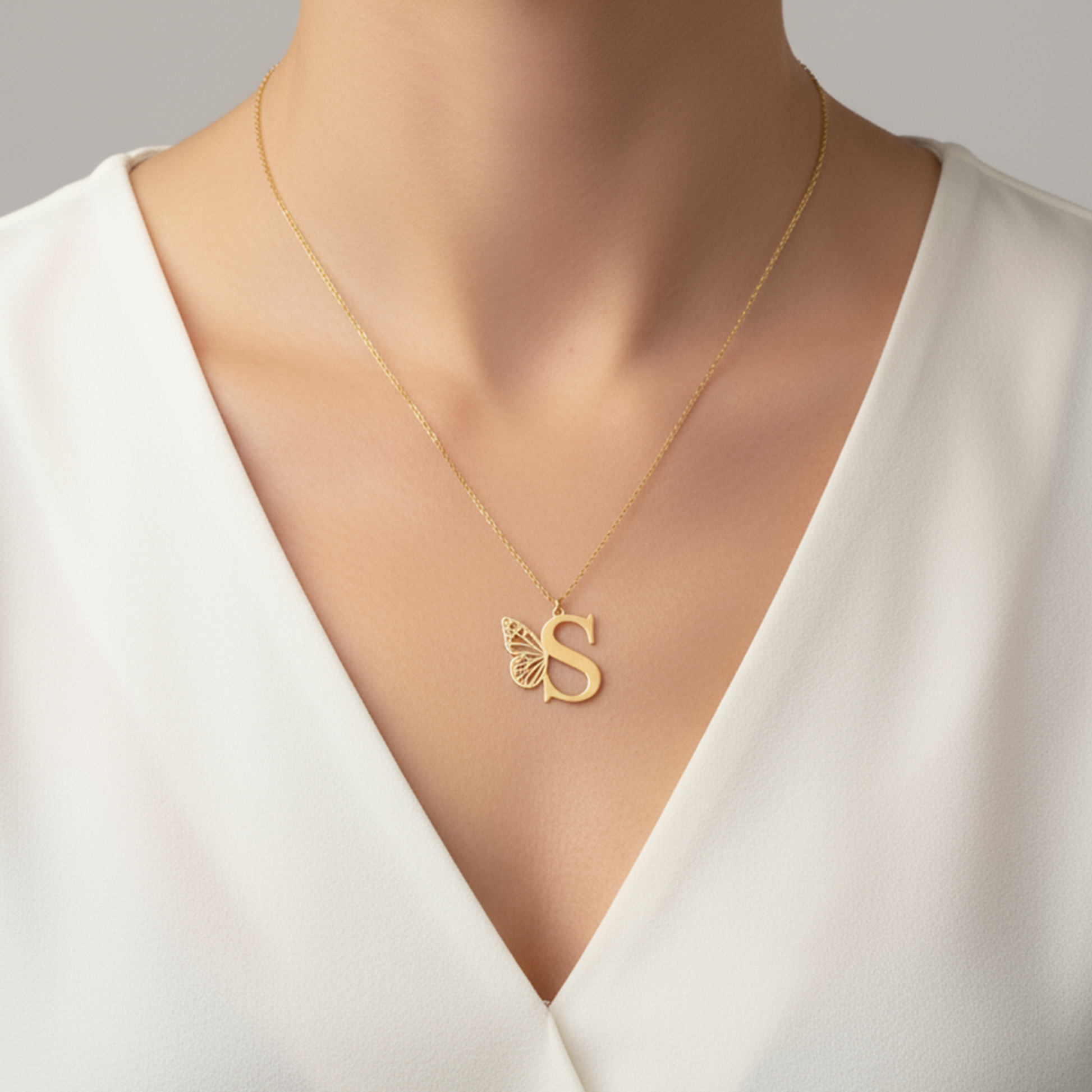 925 Ayar Gümüş Kelebek Tasarımlı Kişiye Özel Harf Kolye