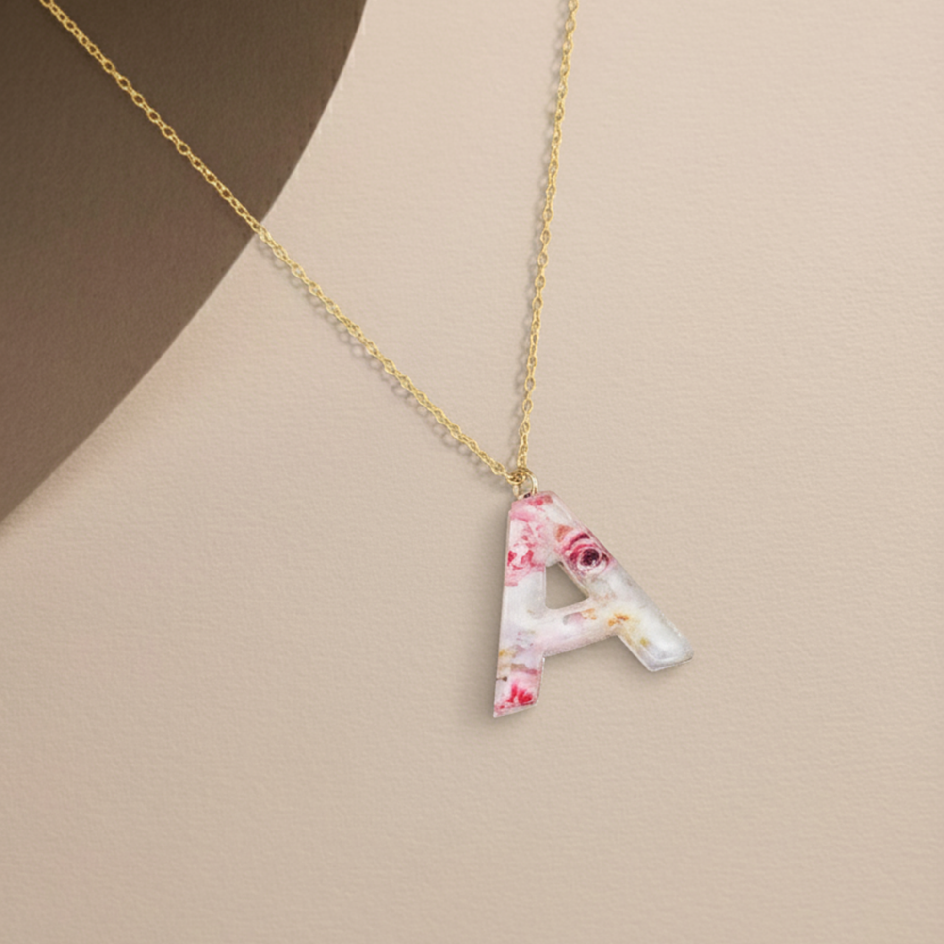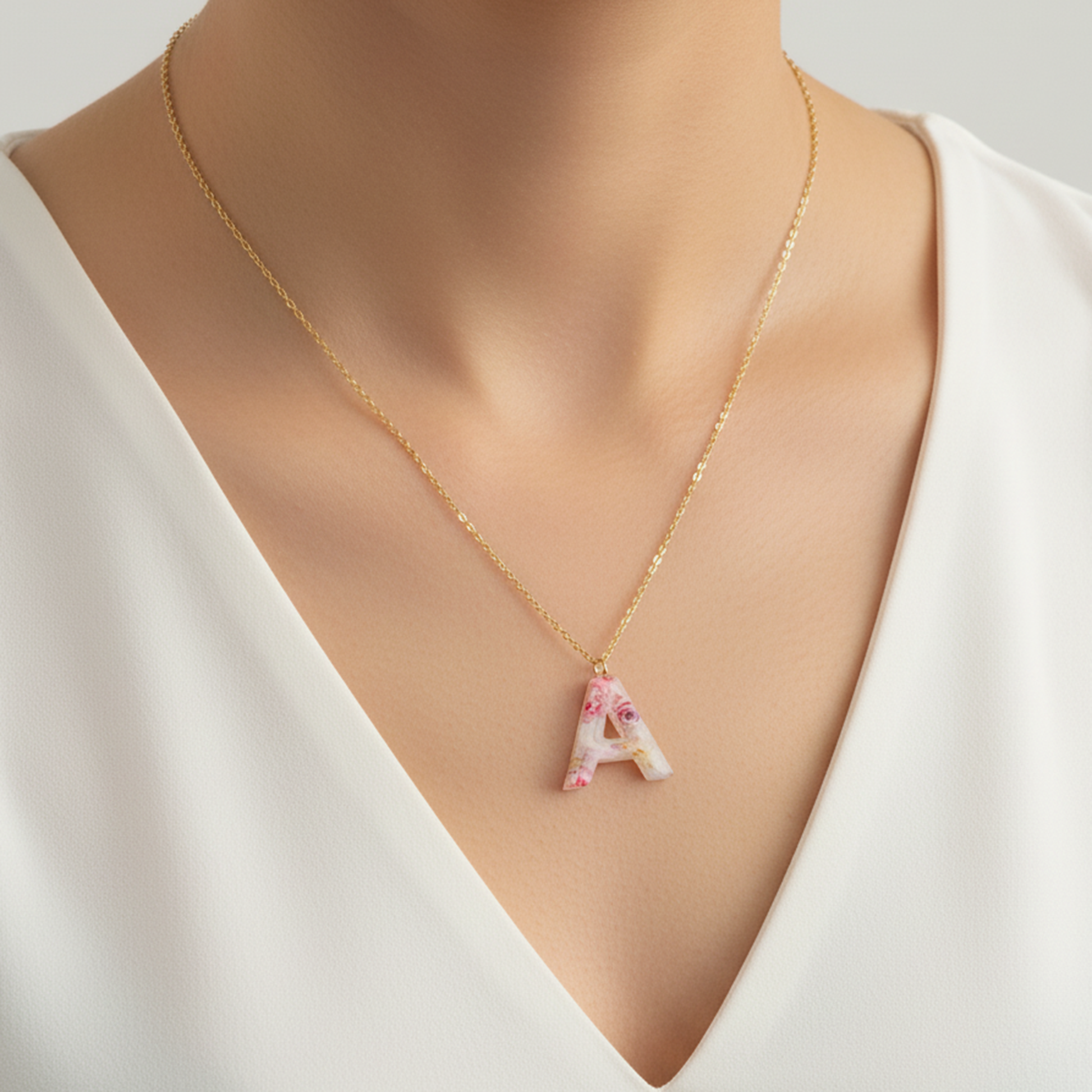 925 Ayar Gümüş Kişiye Özel Çiçek Tasarımlı Harf Kolye