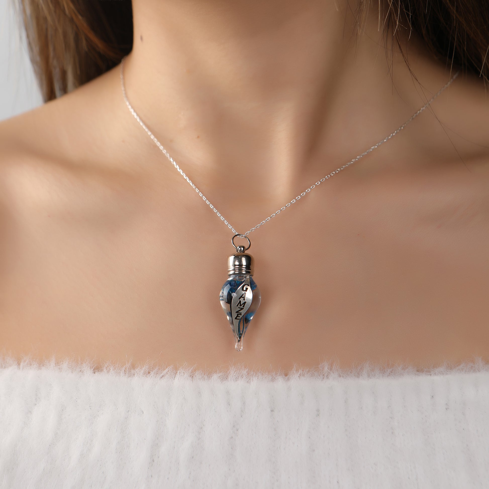 925 Ayar Gümüş Kişiye Özel Fanus Tasarımlı İsimli Kolye