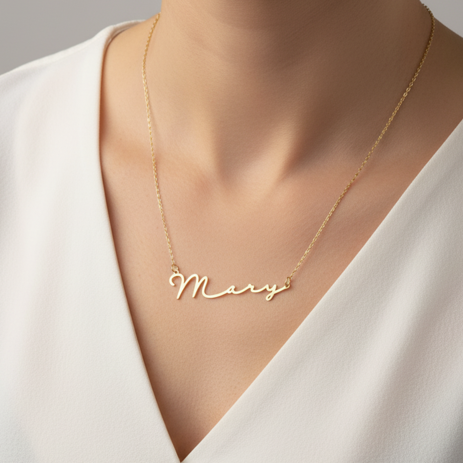 925 Ayar Gümüş Kişiye Özel Yatay İsimli İmza Kolye