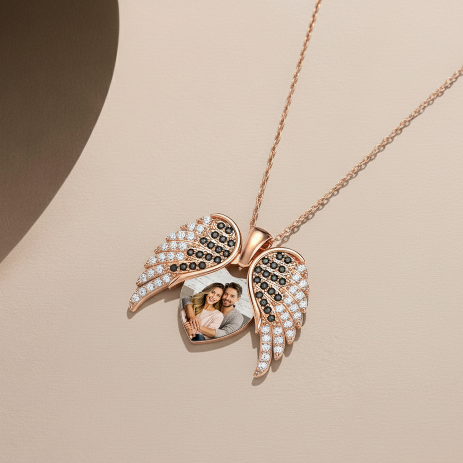 925 Ayar Gümüş Melek Kanat Tasarımlı Kişiye Özel Fotoğraf Kolye