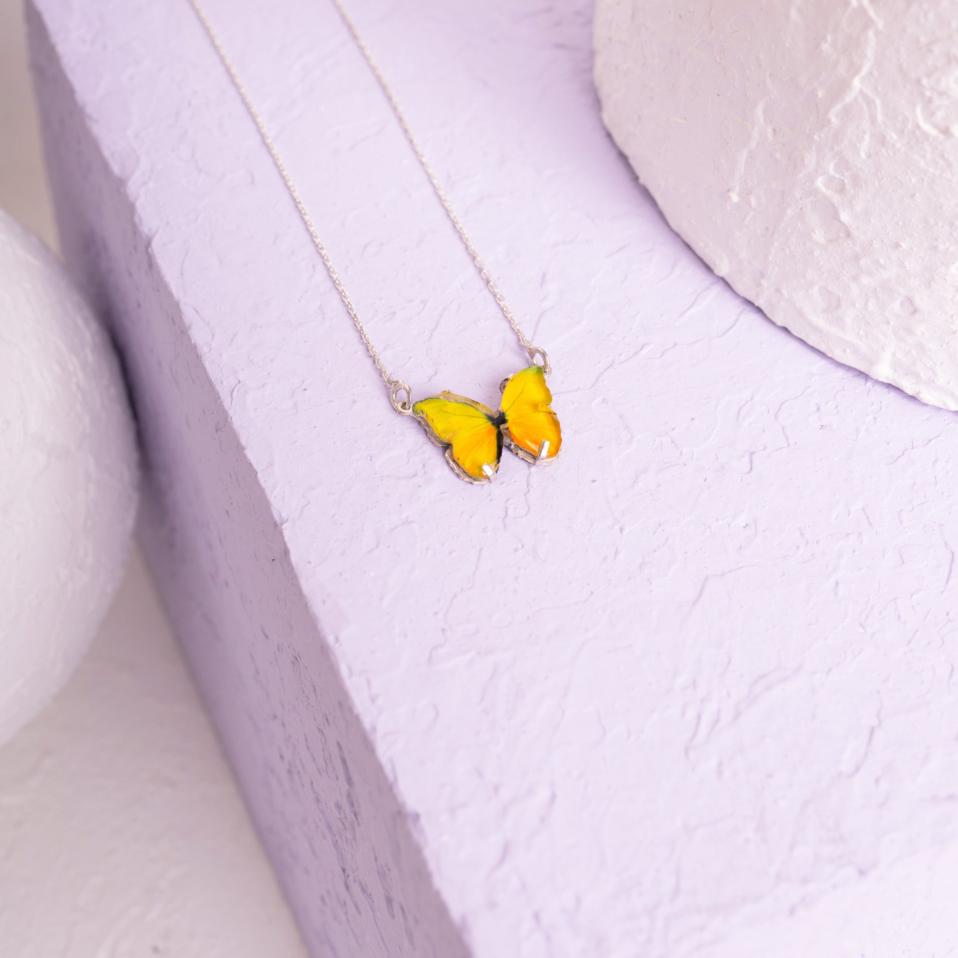 925 Ayar Gümüş Sarı Kelebek Tasarımlı Kolye